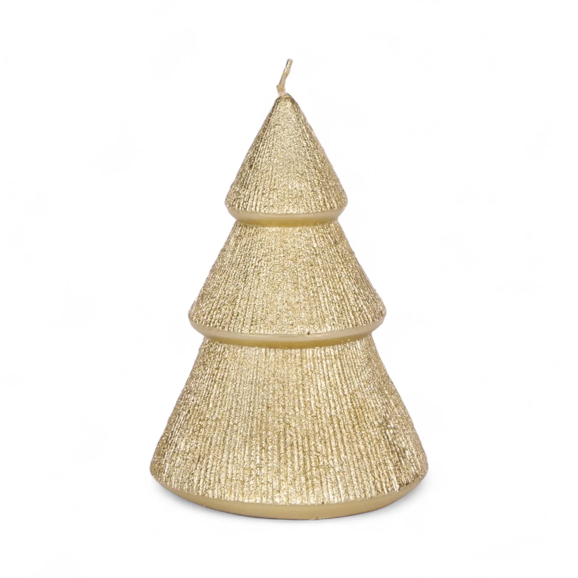Golden elegance meets festive artistry in this exquisite ribbed tree candle that brings luxurious warmth and sophisticated charm to your holiday décor.