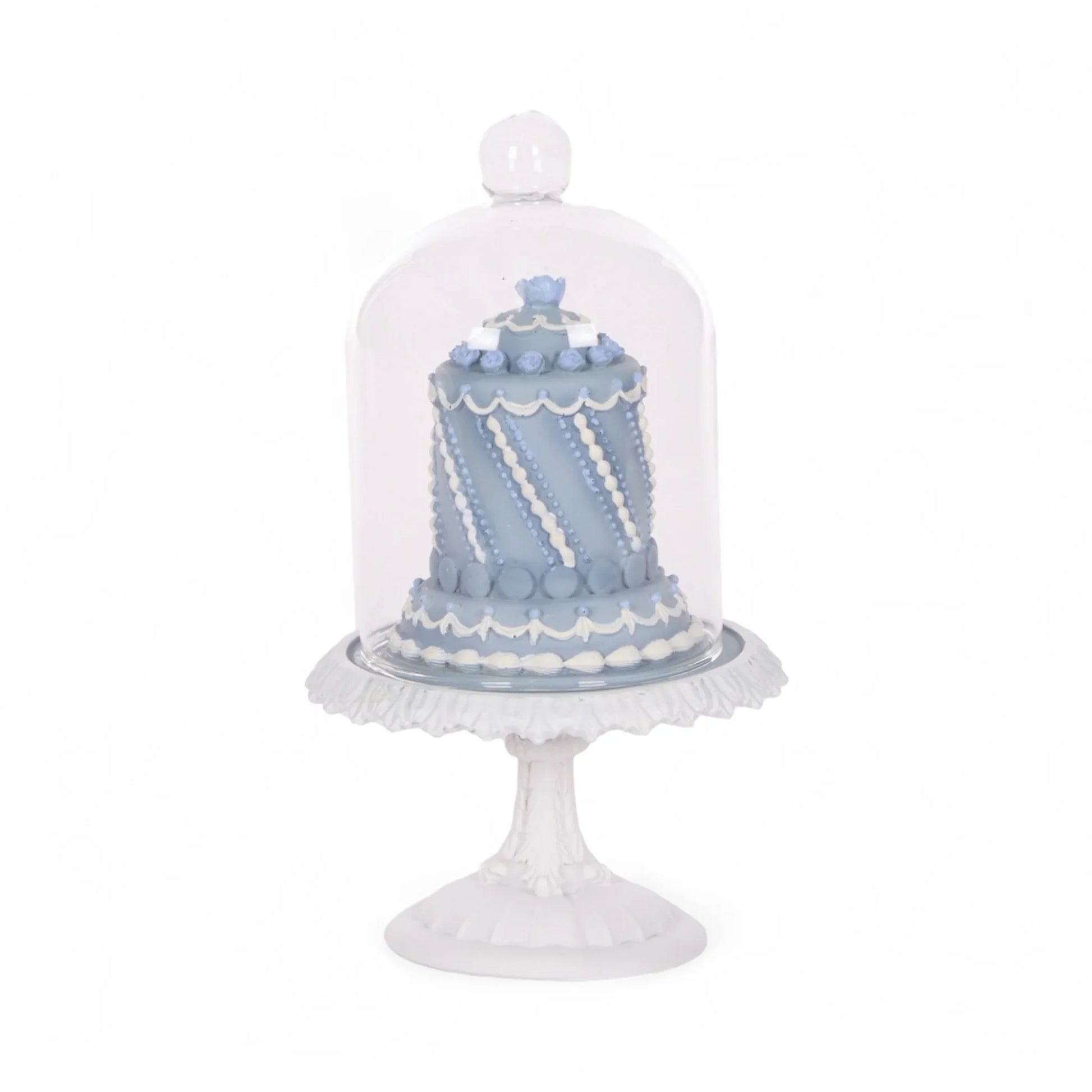 š° At 9.7x9.7x19.1cm, this magnificent cloche showcases premium resin and glass construction with detailed cake artistry that captures confectionery magic perfectly. The elegant blue and white palette with decorative piping brings instant festive sweetness to dining tables, kitchen counters, or any space needing charming display elegance with bakery sophistication.